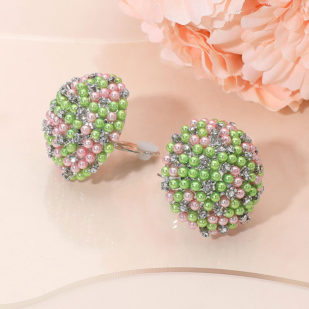 • Elegant clip-on earrings featuring a cluster of round beads accented with sparkling rhinestones for a touch of glamour. Perfect for both casual and formal occasions, these statement earrings add timeless sophistication and refined sparkle to any ensemble.