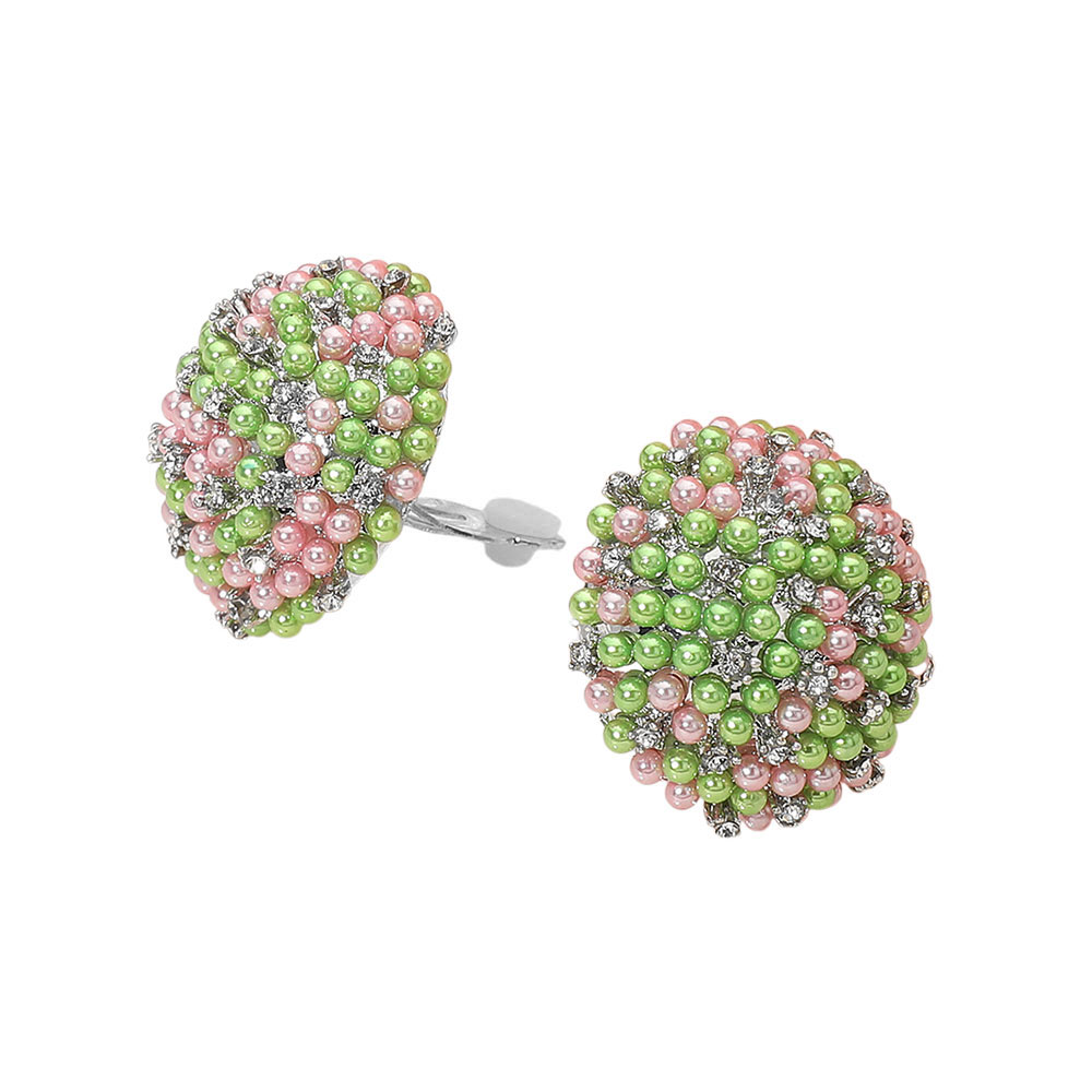 Beaded Pearl Rhinestone Embellished Dome Clip On Earrings Beaded Pearl Rhinestone Embellished Dome Clip On Earrings