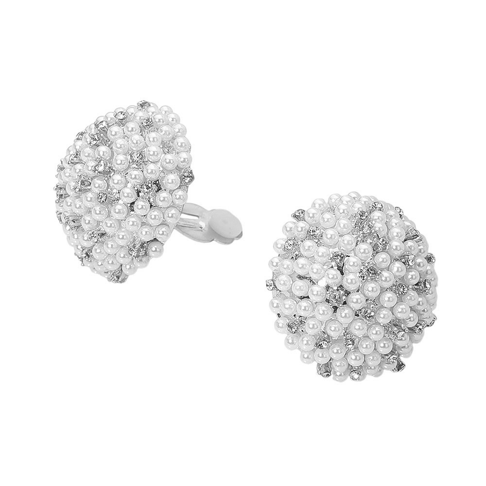 Beaded Pearl Rhinestone Embellished Dome Clip On Earrings Beaded Pearl Rhinestone Embellished Dome Clip On Earrings