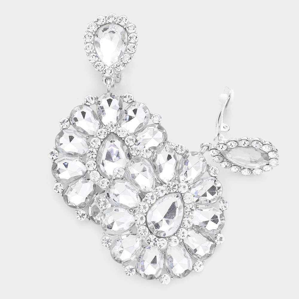 Crystal Teardrop Cluster Statement Clip on Earrings