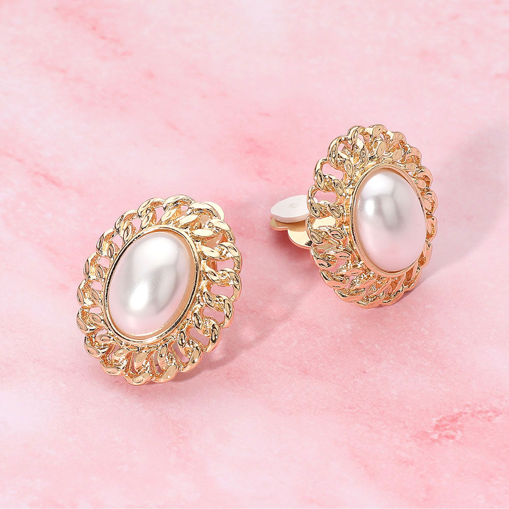 Details • Size : 1" X 1.2" • Clip On • Classic oval dome clip-on earrings featuring a smooth centerpiece surrounded by an intricate textured frame. Designed for comfort without pierced ears, these elegant statement studs bring a timeless vintage-inspired touch to any look. • Lead and Nickel Compliant