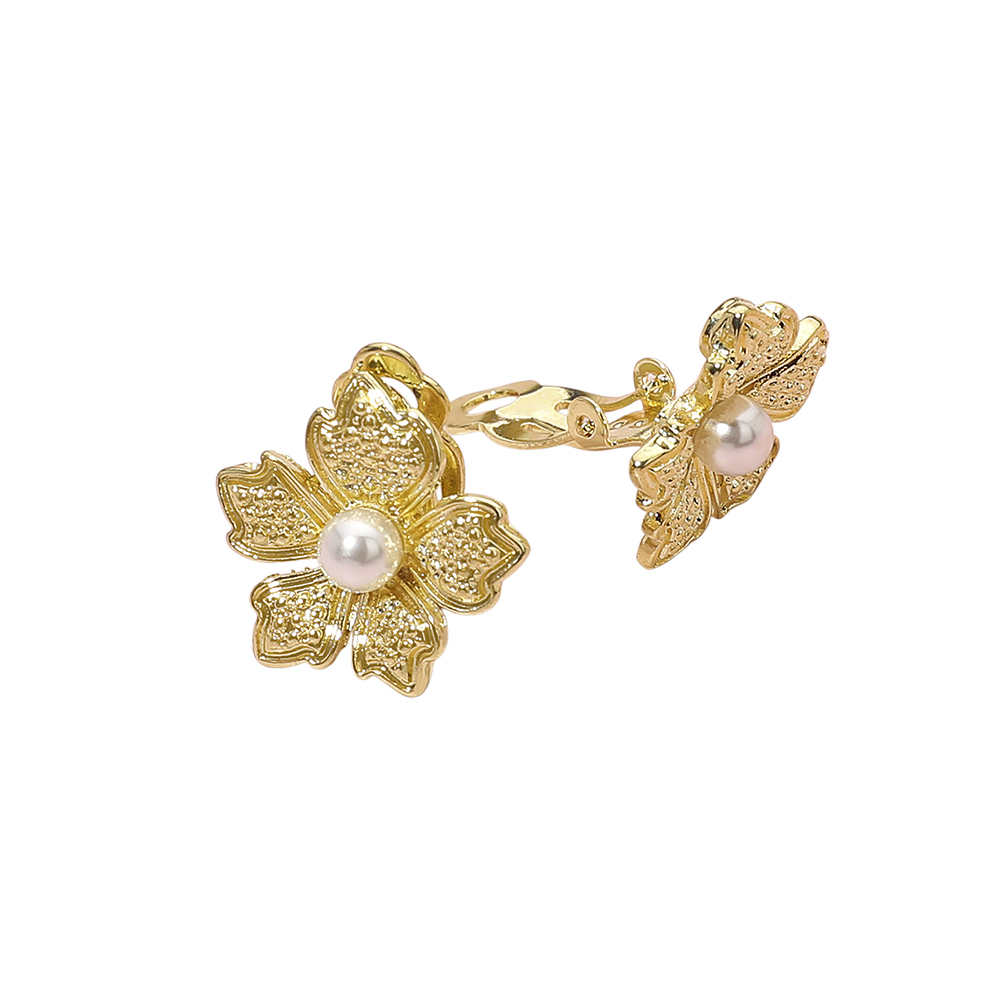 Pearl Accent Textured Metal Petal Floral Clip On Earrings