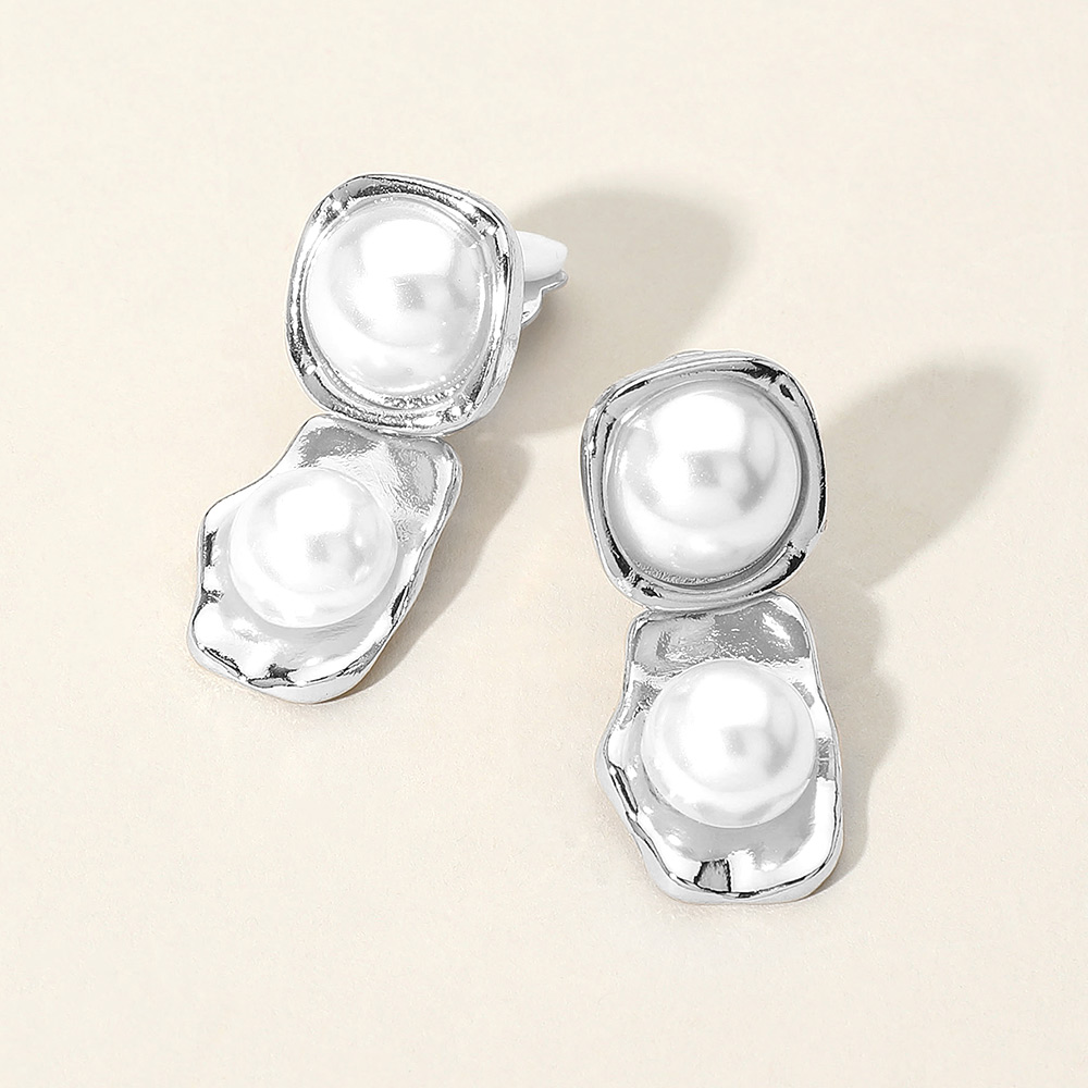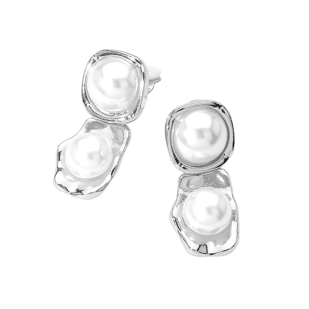 Pearl Stone Paved Shell Pointed Hammered Metal Stretch Bracelet