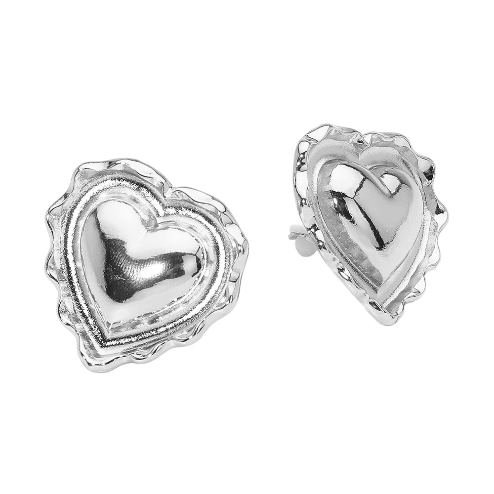 • Add a touch of romance with these puffy heart clip-on earrings featuring a softly contoured design framed by a delicate ruffled edge. Their bold yet feminine silhouette exudes charm and confidence, offering a comfortable fit for effortless wear—perfect for day or night looks.