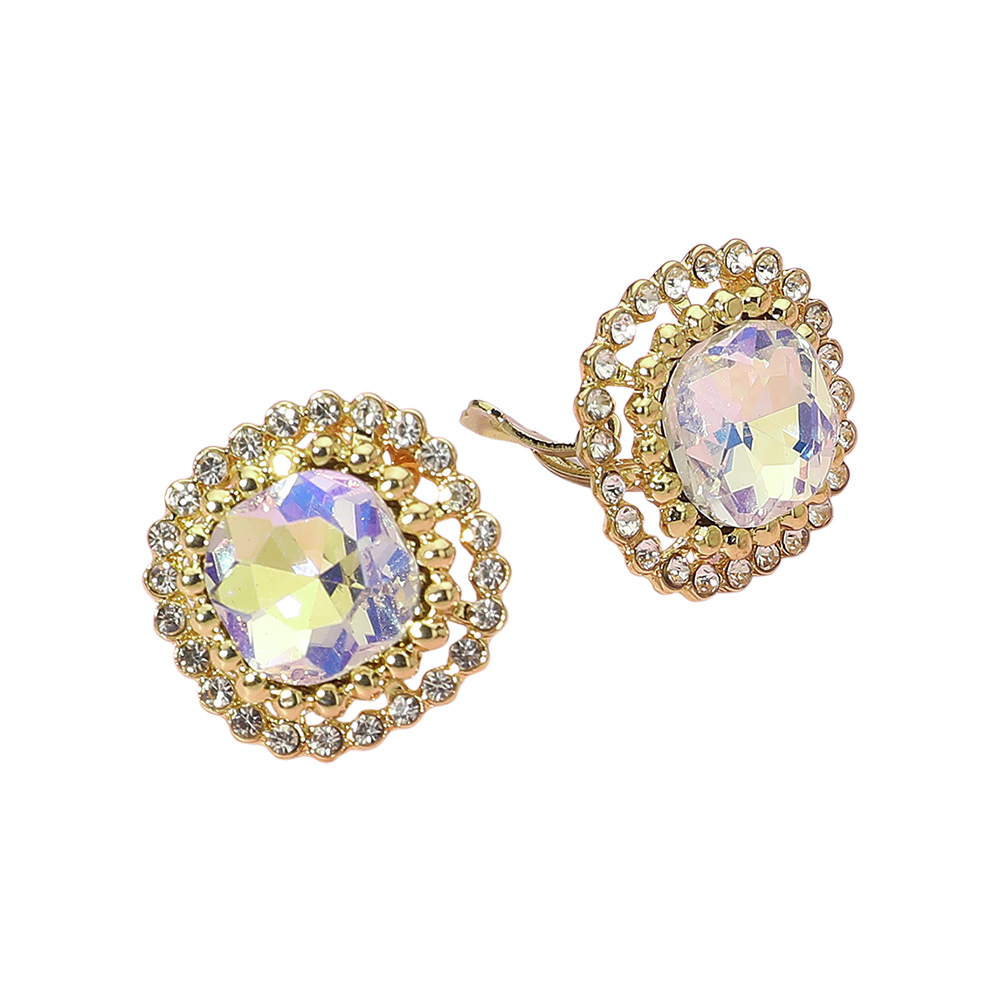 Details • Size : 0.9" X 0.9" • Clip On • Shine effortlessly with these radiant crystal halo clip-on earrings. Featuring a brilliant centerpiece surrounded by shimmering accents, they capture timeless glamour and sophistication. Perfect for formal occasions, evening wear, or adding sparkle to any elegant look. • Lead and Nickel Compliant