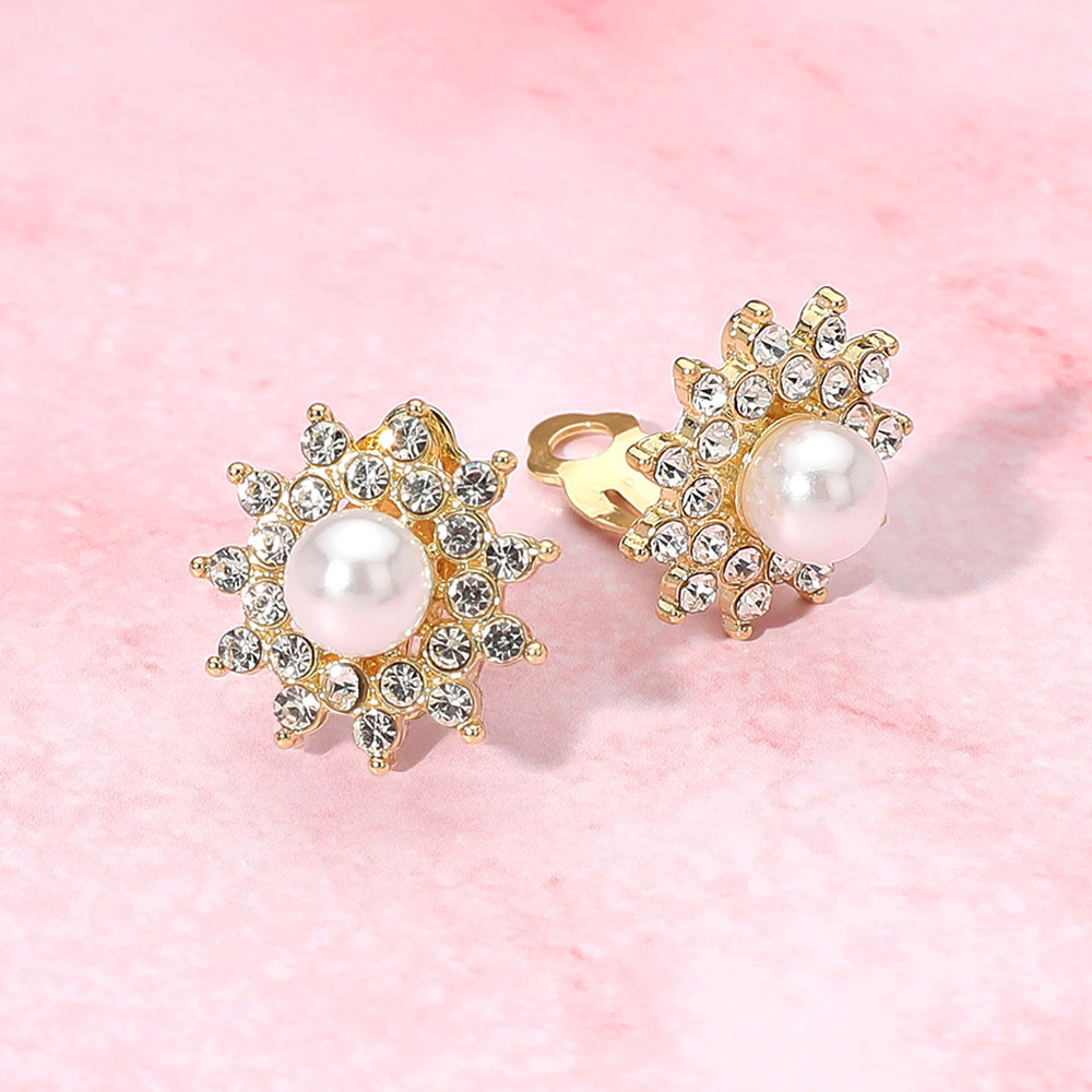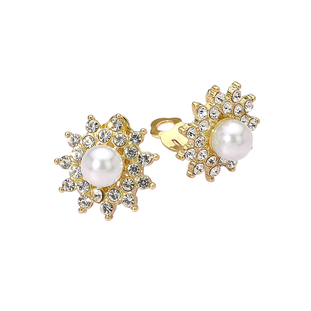 Details • Size : 0.75" X 0.75" • Clip On • Brighten your look with these radiant floral pearl clip-on earrings. Designed with a lustrous centerpiece surrounded by sparkling accents in a blooming motif, they exude elegance and charm. Perfect for weddings, parties, or adding a touch of sophistication to everyday style. • Lead and Nickel Compliant