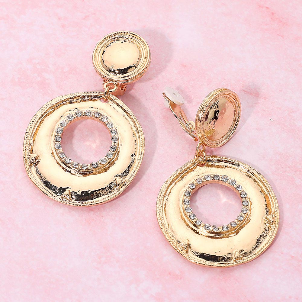 Rhinestone Accent Textured Metal Ring Drop Clip On Earrings