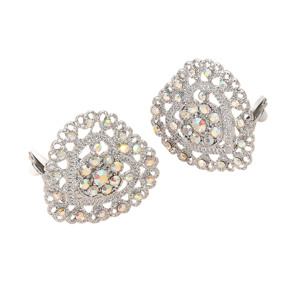 • Elevate everyday and special occasion looks with these heart shape clip earrings featuring intricate openwork and sparkling accent details. Designed for comfortable wear without piercings, they offer timeless charm and eye-catching shine. A perfect boutique accessory for romantic styles, gifts, and elegant statement looks.