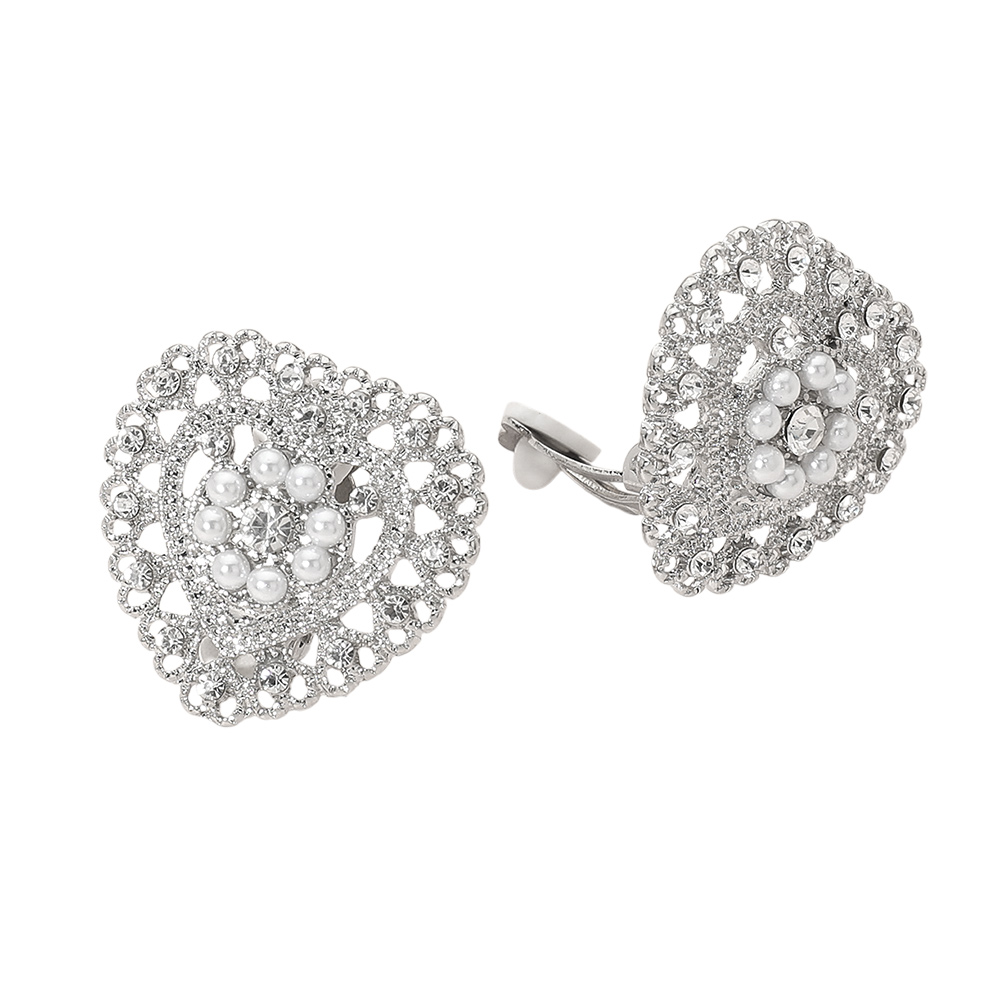 Rhinestone Pearl Embellished Heart Clip On Earrings Rhinestone Pearl Embellished Heart Clip On Earrings Rhinestone Pearl Embellished Heart Clip On Earrings