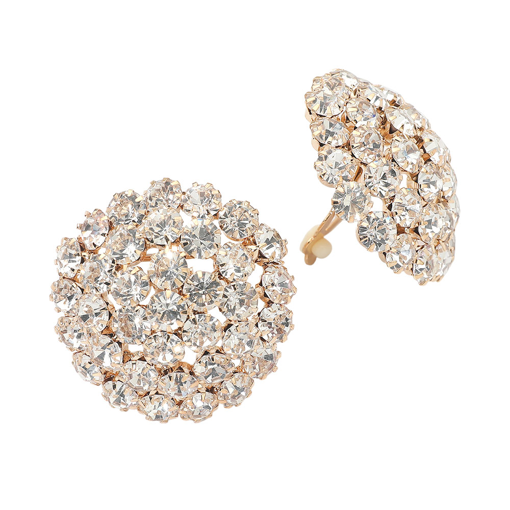 Round Rhinestone Cluster Embellished Evening Clip On Earrings