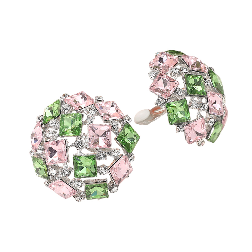 Square Stone Cluster Embellished Dome Evening Clip On Earrings