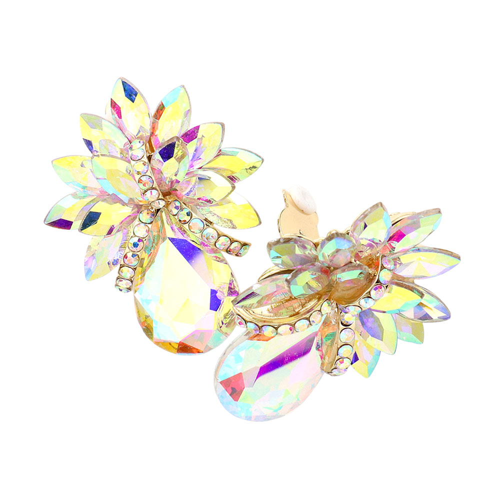 Teardrop Stone Accented Clip on Evening Earrings Teardrop Stone Accented Clip on Evening Earrings