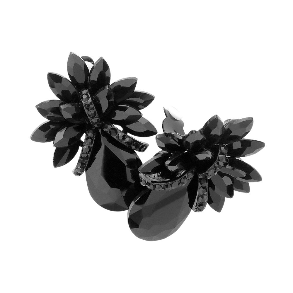 Teardrop Accented Marquise Stone Cluster Dangle Evening Earrings