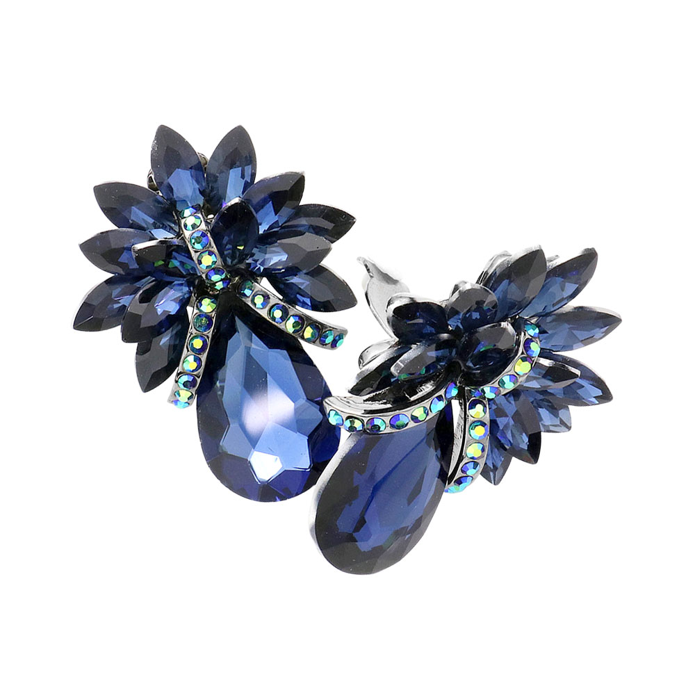 Details • Size : 1.75" X 2.25" • Clip On • Stunning clip-on earrings designed with a leaf cluster arrangement and dazzling crystal accents. These bold statement earrings add a glamorous touch to any outfit, perfect for parties, weddings, and evening events where timeless sophistication meets modern sparkle.