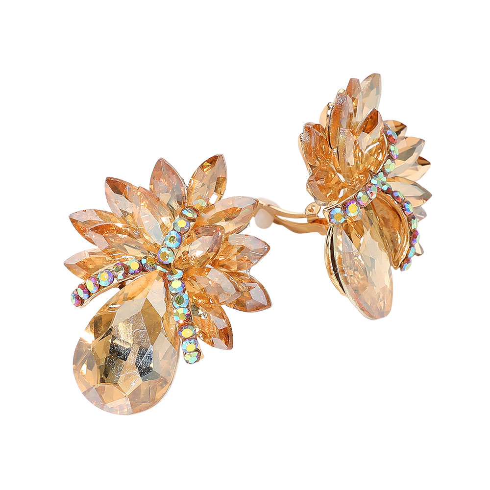 • Stunning clip-on earrings designed with a leaf cluster arrangement and dazzling crystal accents. These bold statement earrings add a glamorous touch to any outfit, perfect for parties, weddings, and evening events where timeless sophistication meets modern sparkle.