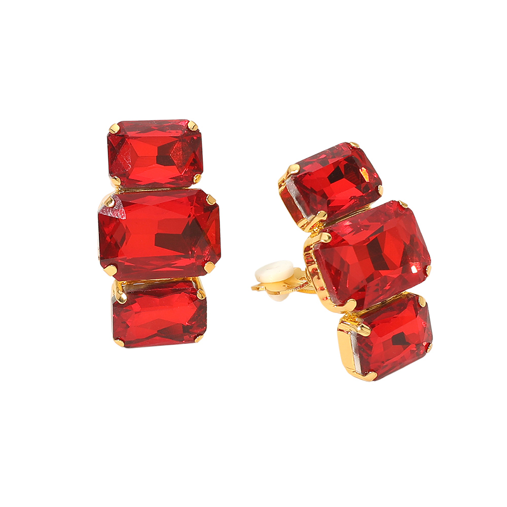 Triple Rectangular Faceted Stone Evening Clip On Earrings