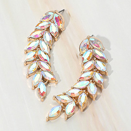 Details • Size : 0.6" X 2.75" • Post Back • Add a touch of elegance with these leaf-inspired drop earrings featuring American USA flag colored marquise-cut crystals. A refined accessory for formal occasions or sophisticated everyday style. • Lead and Nickel Compliant