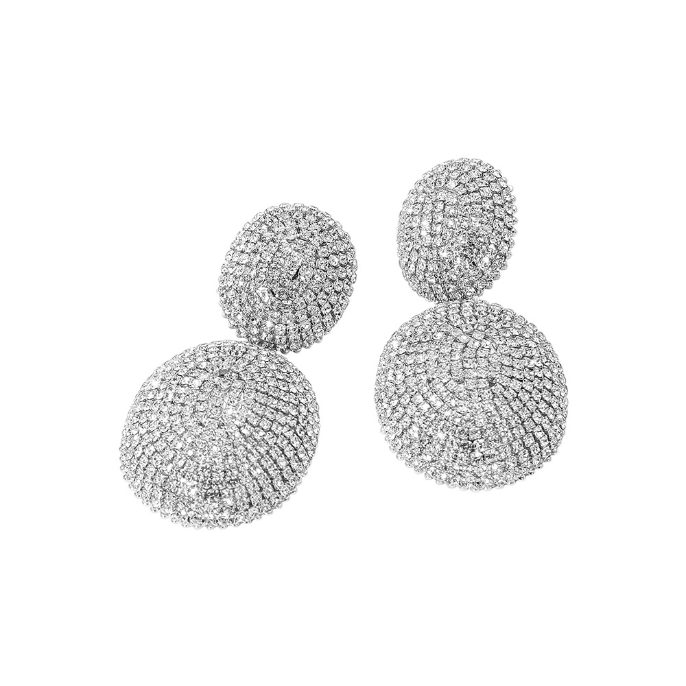 Bold Rhinestone Pave Oval Dome Drop Statement Earrings