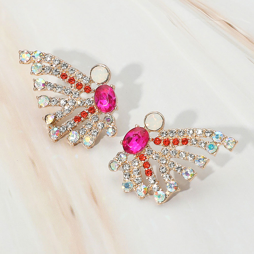 Details • Size : 0.75" X 1.25" • Post Back • Turn heads with these multicolor crystal fan earrings featuring dazzling rhinestones in a radiant layered design. The mix of sparkling stones adds depth and drama, perfect for parties, galas, or nights out when you want to elevate your outfit with bold, luminous flair. • Lead and Nickel Compliant