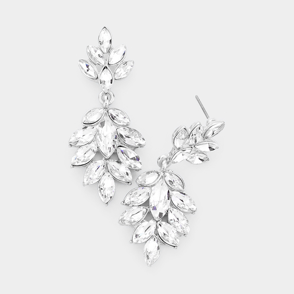 Marquise Glass Crystal Oval Cluster Vine Evening Earrings