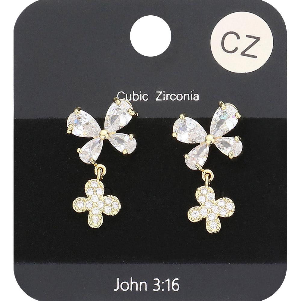 Metal Butterfly Stone Flower Cluster Dangle Earrings