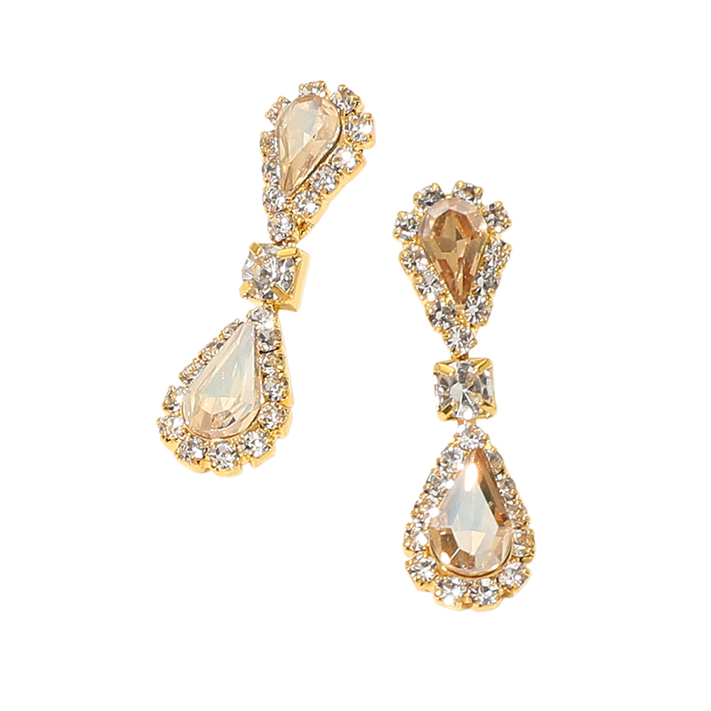 Double Teardrop Accented Rhinestone Trimmed Dangle Evening Earrings Double Teardrop Accented Rhinestone Trimmed Dangle Evening Earrings