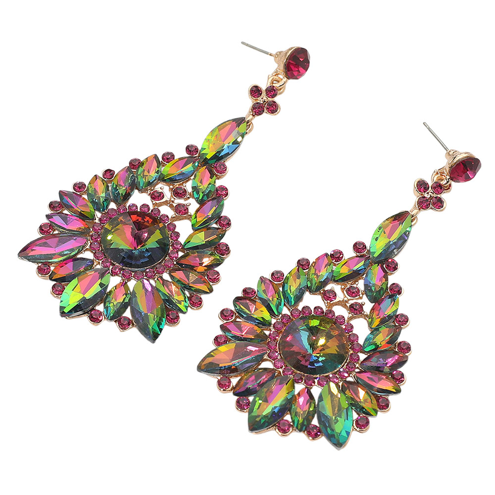 Elegant Marquise Round Stone Cluster Teardrop Evening Earrings