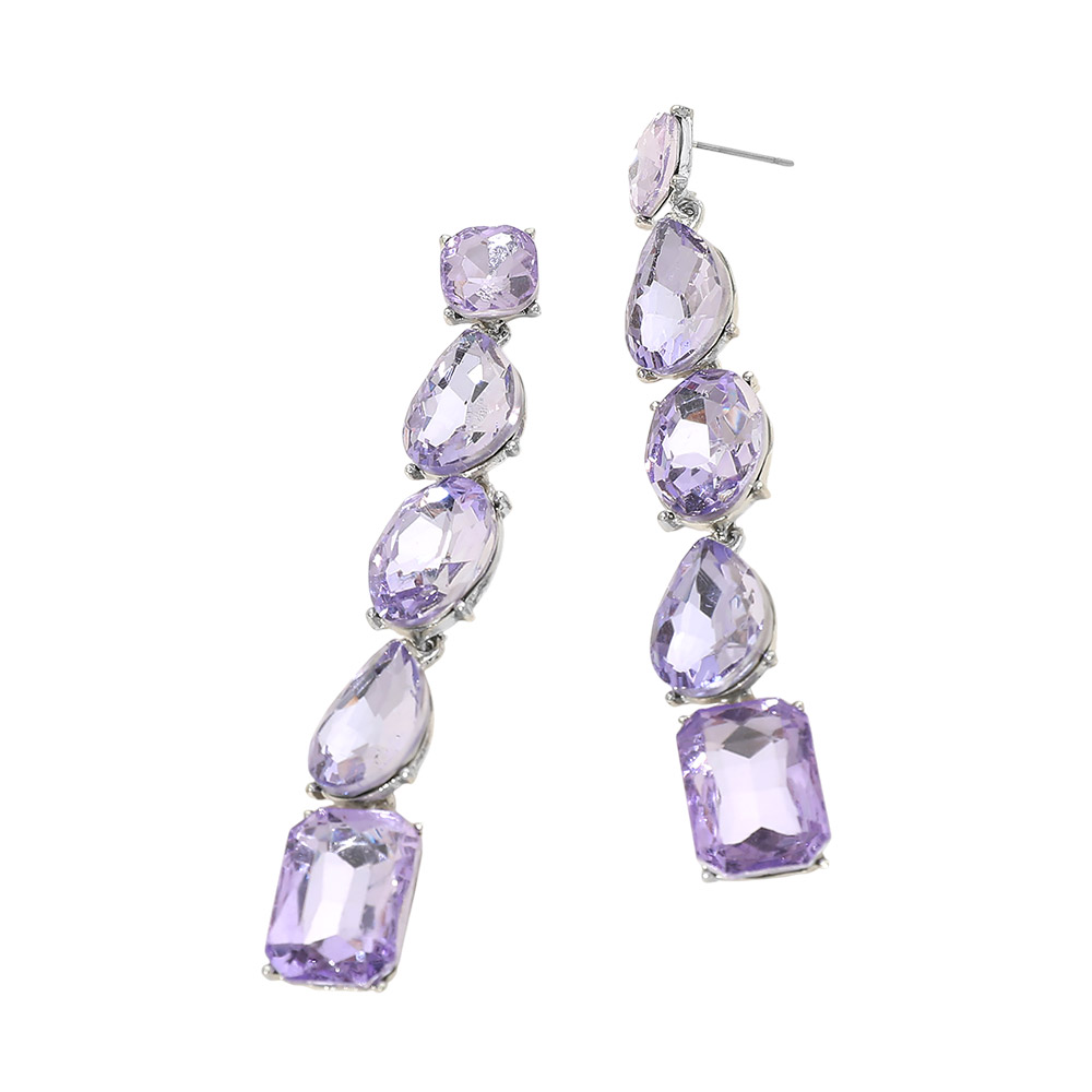 • These graduated faceted drop statement earrings feature a sleek vertical design with multiple geometric stones arranged for elegant movement and shine. Designed to elongate the silhouette, they are ideal for evening wear, special occasions, and event styling. A bold yet refined accessory that adds instant sophistication and visual impact to any curated jewelry assortment.