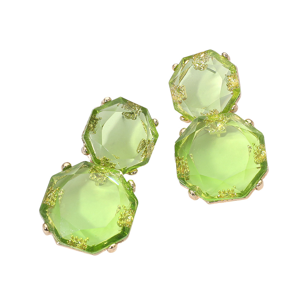 • These faceted double gem drop earrings feature a striking octagonal design that reflects light with every movement. Their elegant, layered silhouette adds a refined touch, making them a standout accessory for both casual and formal occasions.