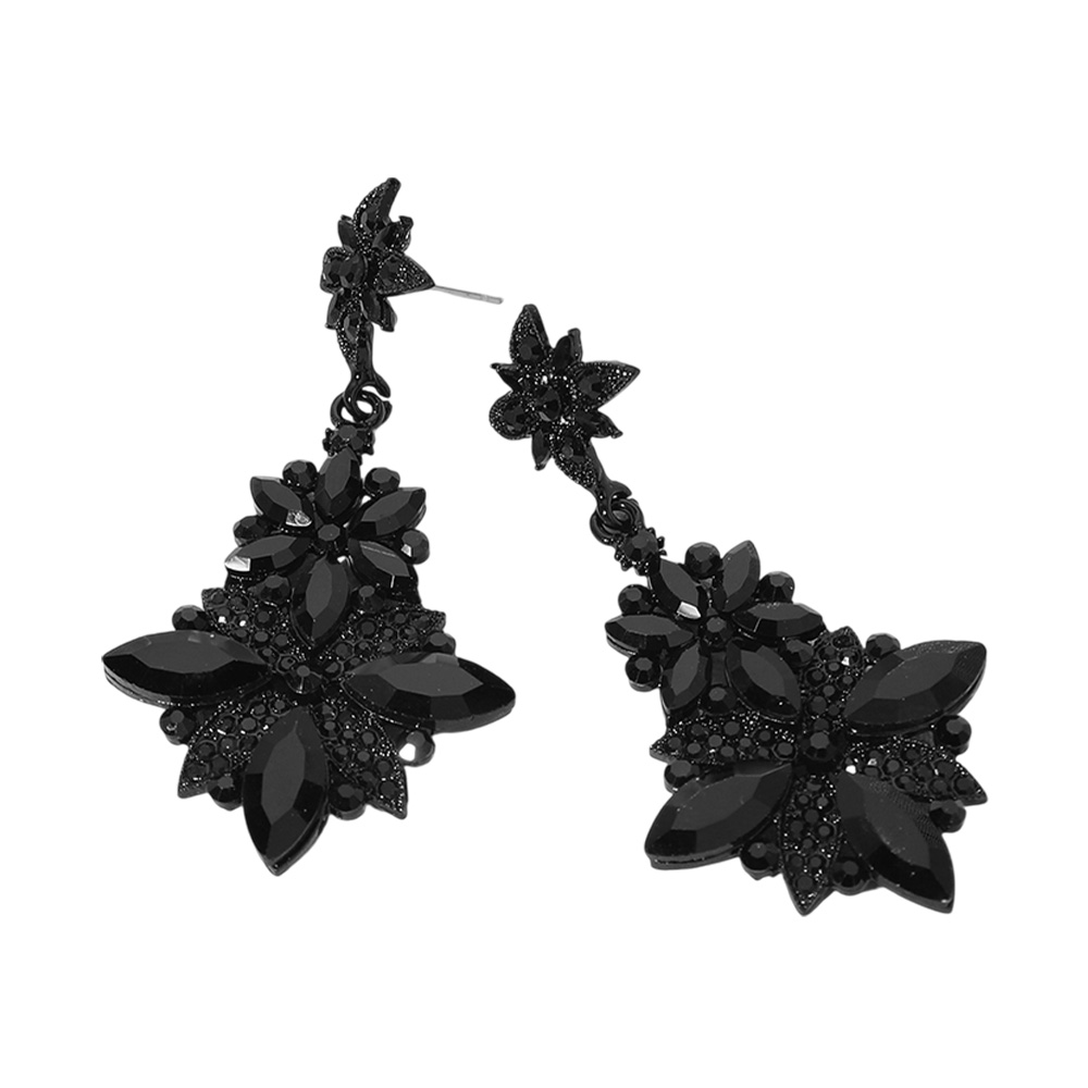 Details • Size : 1.4" X 2.75" • Post Back • Radiate elegance with these floral crystal drop earrings featuring a stunning cluster of faceted stones in a dazzling flower design. Ideal for weddings, galas, or celebrations, these statement earrings add a glamorous finishing touch to elevate your evening or bridal look. • Lead and Nickel Compliant