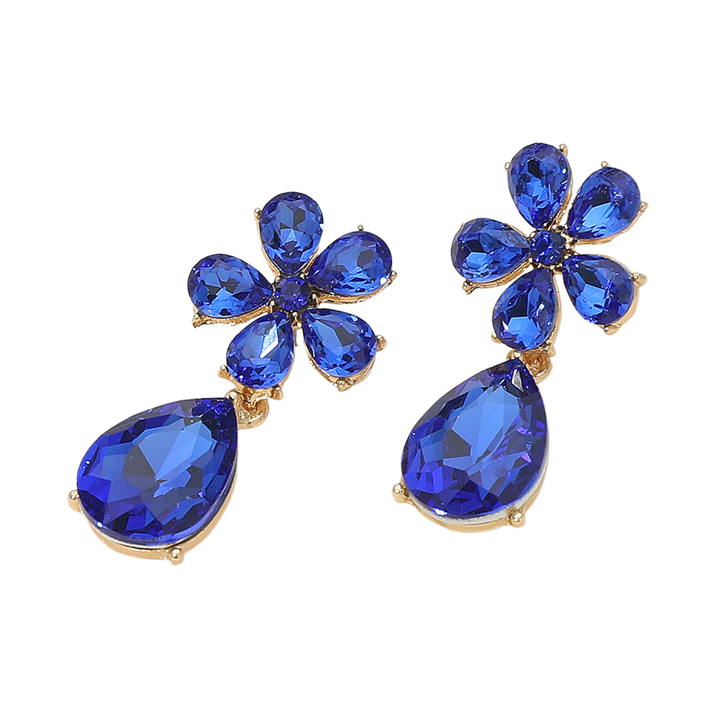 Flower Teardrop Stone Cluster Dangle Evening Earrings