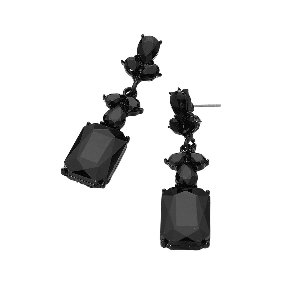 • These geometric drop statement earrings feature a bold, faceted design with a cascading arrangement of gem-like shapes. Perfect for adding a touch of sophistication to evening looks, they combine modern elegance with timeless glamour—ideal for special occasions or chic events.