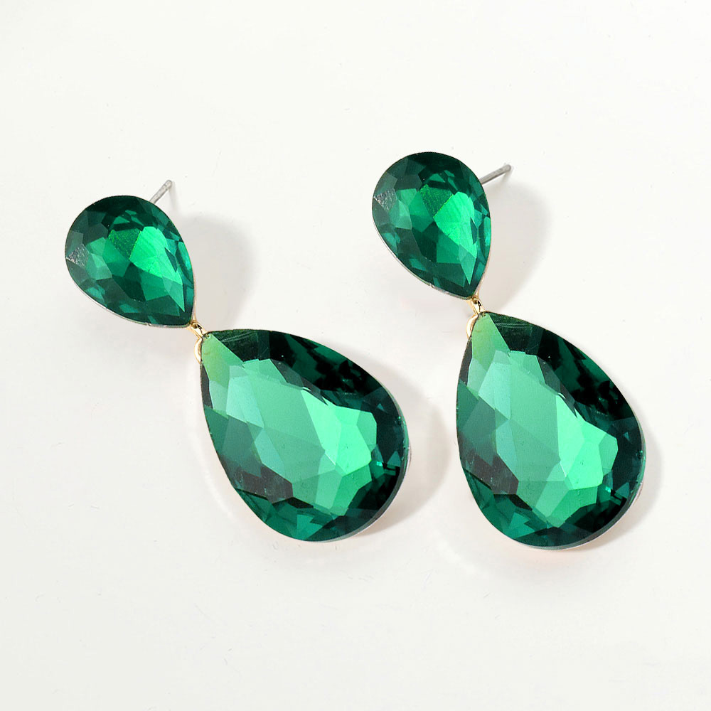 • Glamorous faceted teardrop dangle earrings featuring a radiant crystal-cut design that catches the light beautifully. Lightweight and sophisticated, these statement earrings elevate evening outfits, weddings, or special occasions with timeless elegance and refined sparkle.