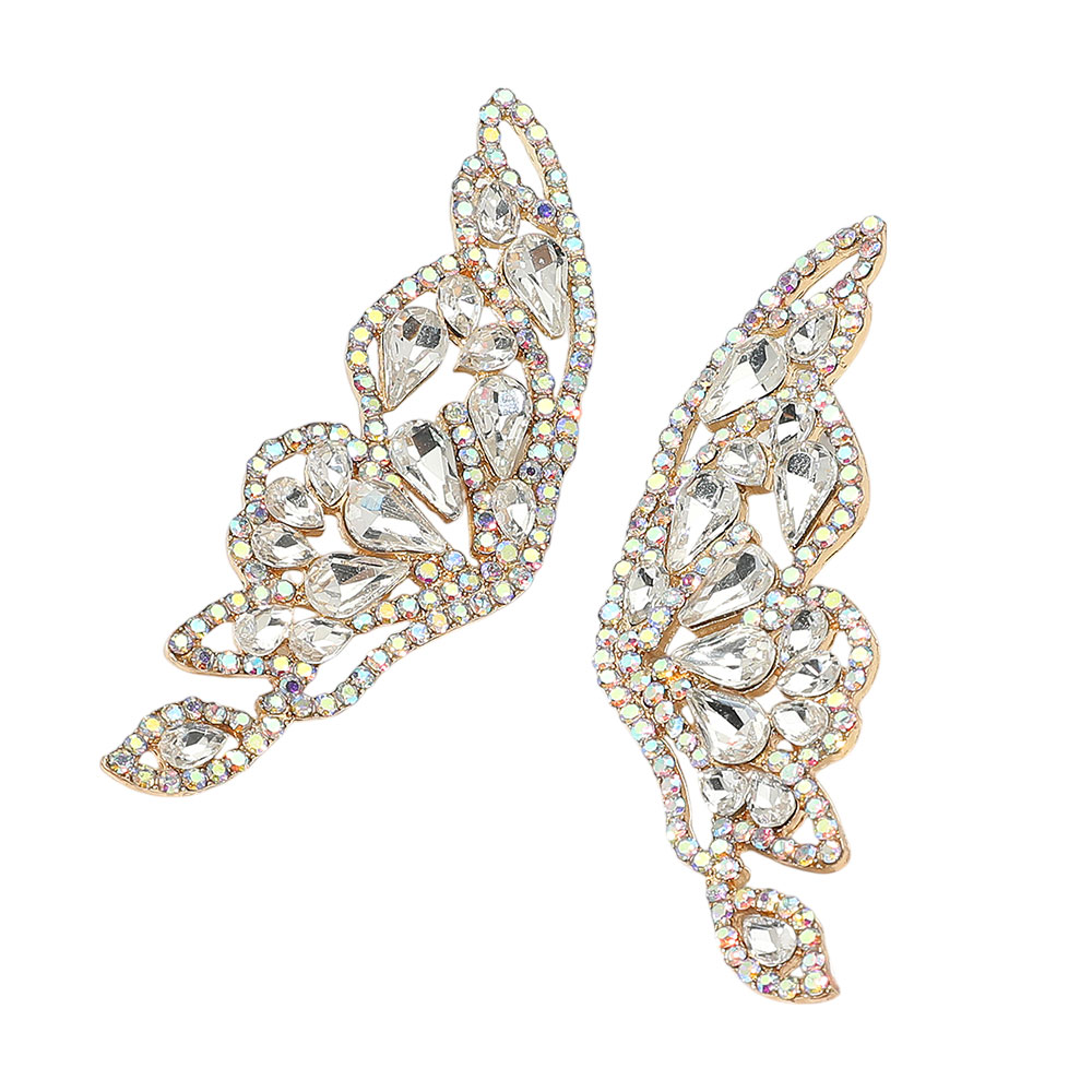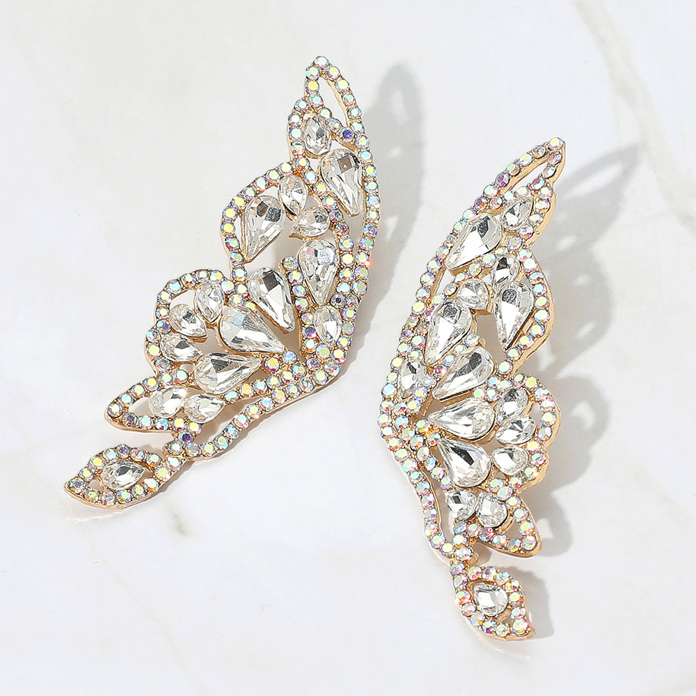 Glass Stone Cluster Embellished Butterfly Evening Earrings