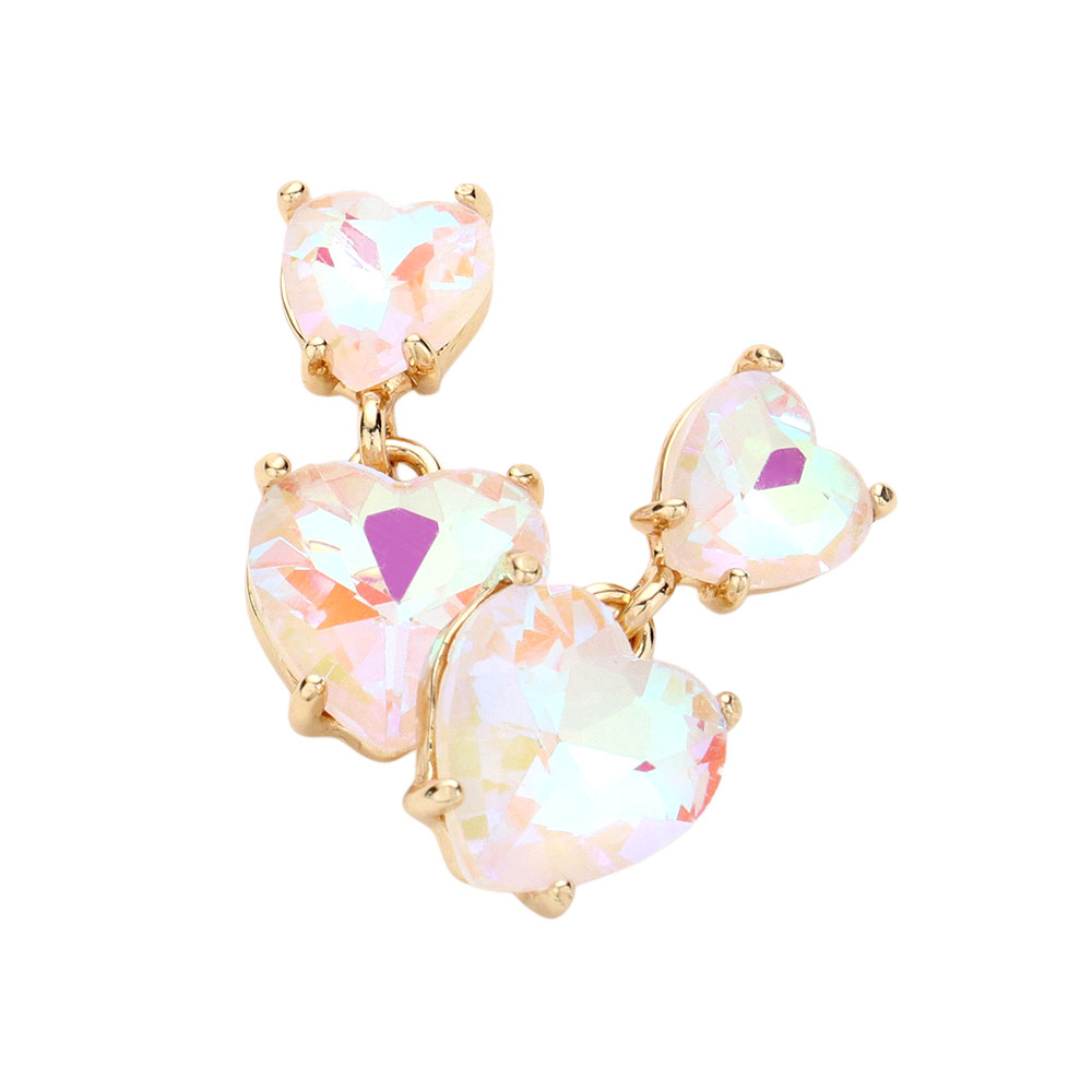 Details • Size : 0.6" X 1.1" • Post Back • Elegant double heart drop earrings featuring dazzling faceted stones that shine beautifully. A romantic and chic accessory perfect for date nights, special occasions, or gifting someone you love. • Lead and Nickel Compliant