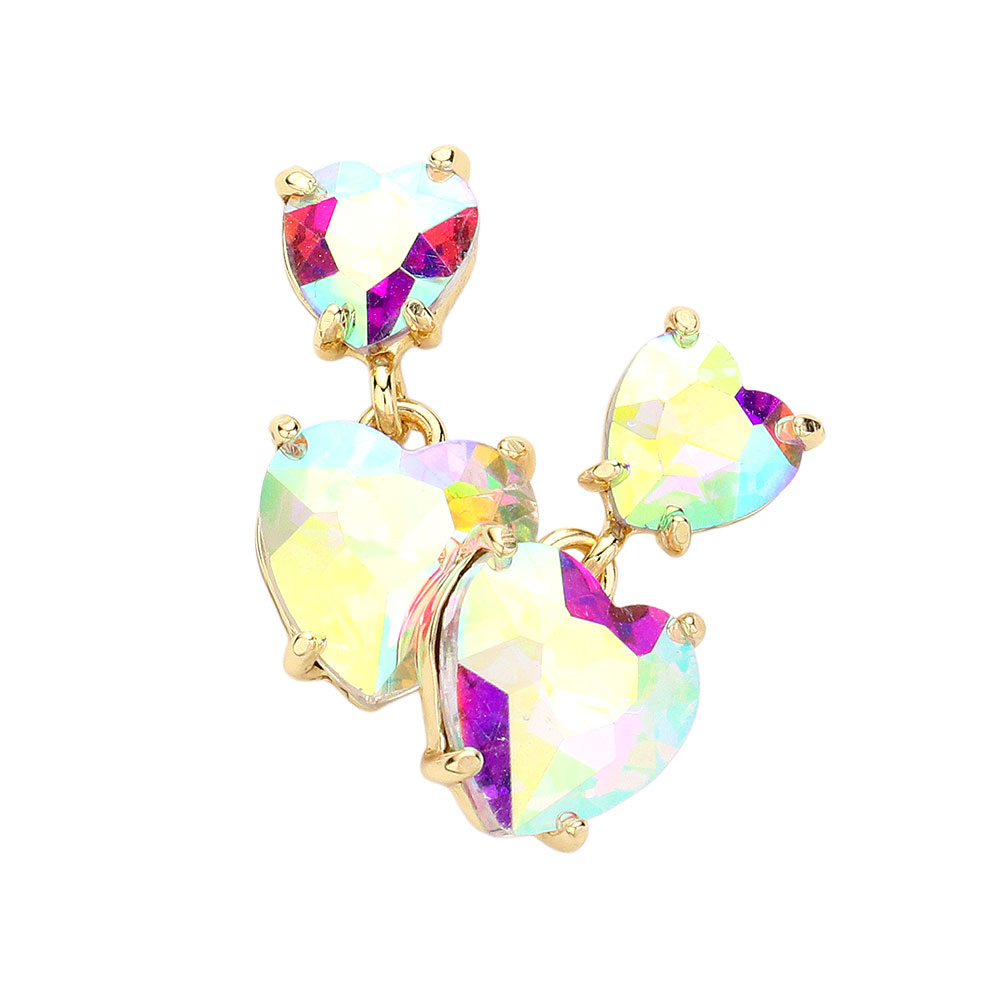 Details • Size : 0.6" X 1.1" • Post Back • Elegant double heart drop earrings featuring dazzling faceted stones that shine beautifully. A romantic and chic accessory perfect for date nights, special occasions, or gifting someone you love. • Lead and Nickel Compliant