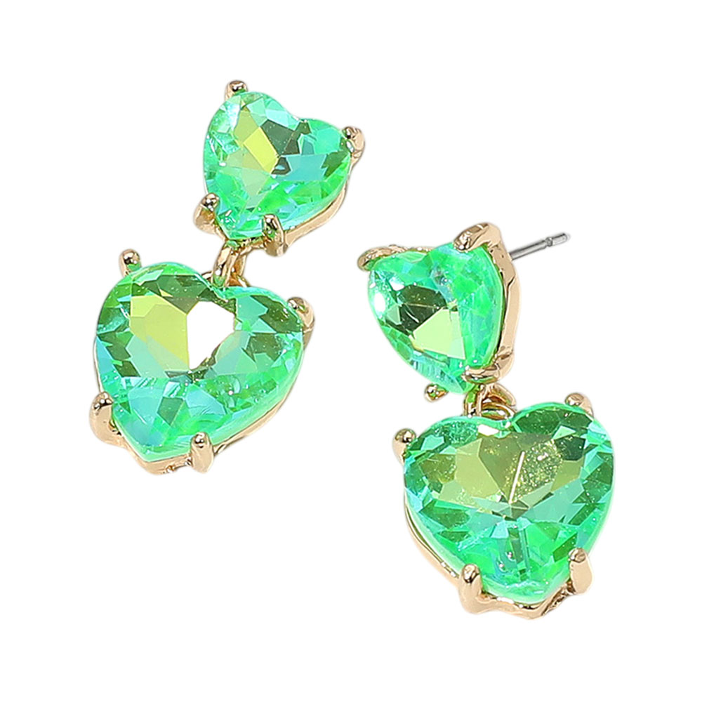 Details • Size : 0.6" X 1.1" • Post Back • Elegant double heart drop earrings featuring dazzling faceted stones that shine beautifully. A romantic and chic accessory perfect for date nights, special occasions, or gifting someone you love. • Lead and Nickel Compliant