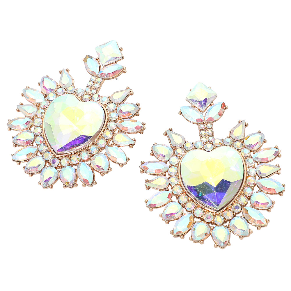 • Heart crystal statement drop earrings featuring a bold faceted center and radiant surrounding details. Designed to catch the light from every angle, this dramatic yet elegant style is perfect for special occasions, evening wear, and boutique collections seeking standout, romantic jewelry with strong visual impact.