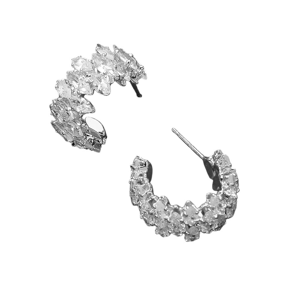 Details • Size : 1.25" X 0.75" X 0.4" • Post Back • Elegant half hoop earrings designed with closely set faceted stones that create continuous sparkle and a refined curved silhouette. These statement earrings offer a balanced blend of glamour and everyday wearability, making them ideal for dressing up casual looks or completing evening outfits with polished shine. • CZ Cubic Zirconia • Lead and Nickel Compliant
