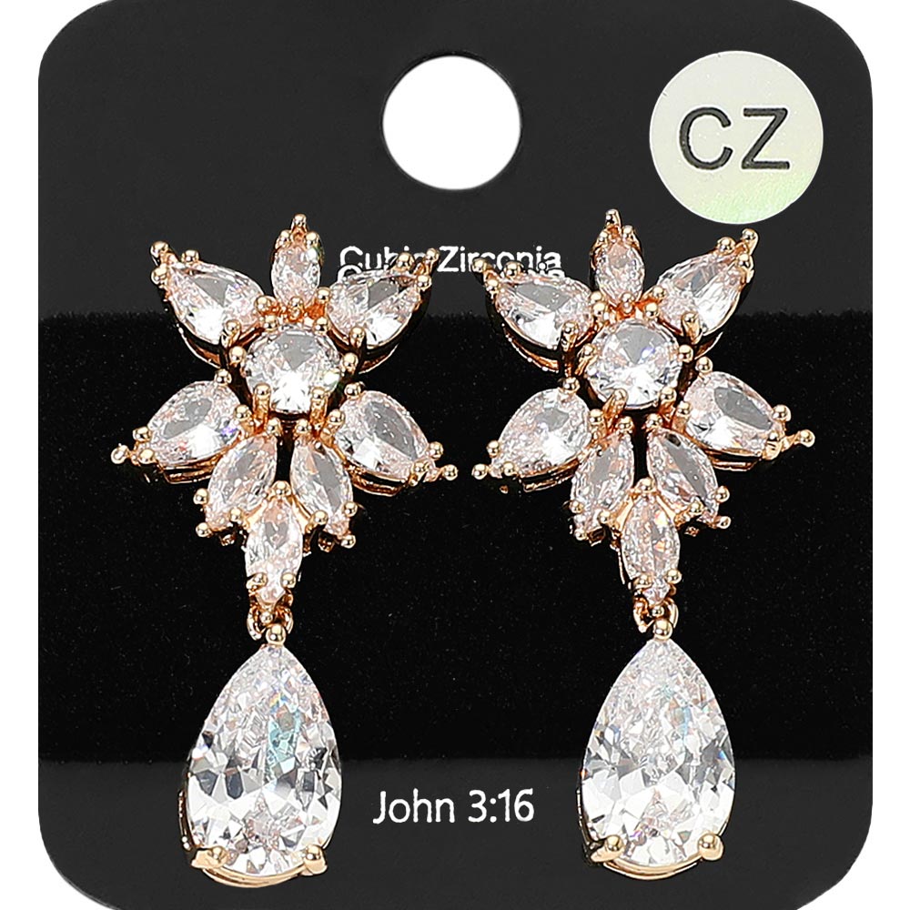 • These teardrop cluster cubic zirconia drop earrings dazzle with a radiant mix of marquise and pear-cut stones arranged in a floral-inspired pattern. Designed for special occasions, they deliver brilliant sparkle and timeless sophistication, making them a standout accessory for elegant looks.