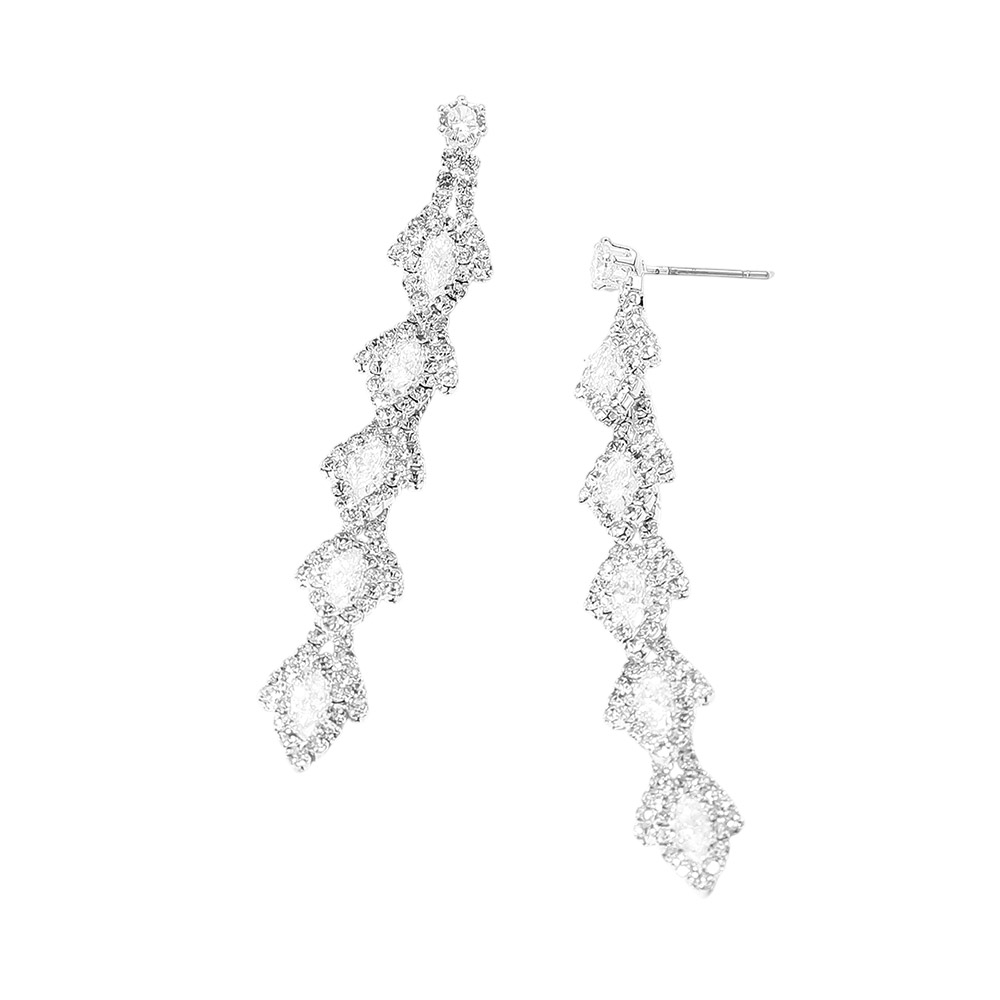 Details • Size : 0.4" X 2.6" • Post Back • These sparkling diamond-cut drop earrings feature a cascading pattern of radiant stones that capture light with every movement. Ideal for weddings, galas, and formal events, they offer a refined statement of luxury and sophistication, elevating any elegant or evening ensemble. • CZ Cubic Zirconia • Lead and Nickel Compliant