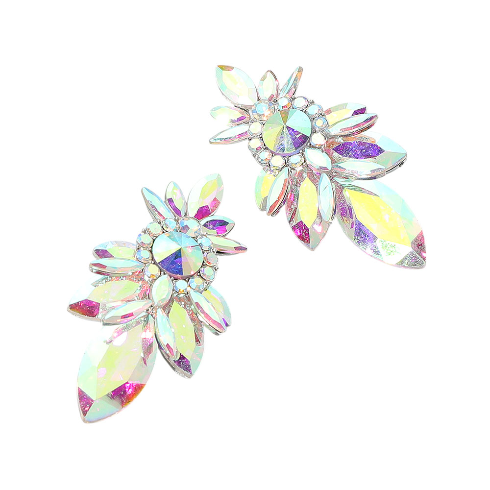 Details • Size : 1.25" X 2.3" • Post Back • Radiant iridescent cluster earrings with marquise and round-cut stones that shimmer beautifully from every angle. A striking accessory perfect for evening events, weddings, or festive occasions to add a bold sparkle. • Lead and Nickel Compliant