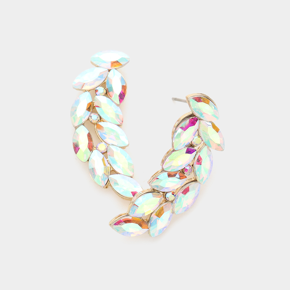 Bold Geometric Radiant Oval Crystal Evening Earrings