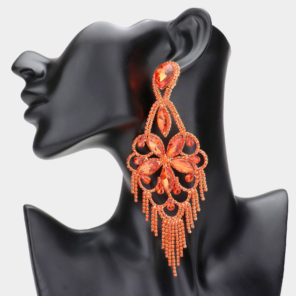 • These statement crystal fringe drop earrings feature an elegant elongated silhouette with layered detailing that creates eye-catching movement. Designed to elevate formal looks, parties, weddings, and special occasions, they offer a dramatic yet refined accent for evening wear, stage styling, and fashion-forward accessory collections.