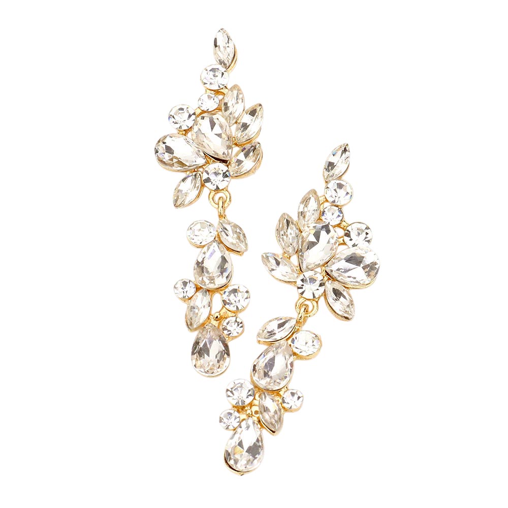 Multi Stone Cluster Vine Dangle Evening Earrings Multi Stone Cluster Vine Dangle Evening Earrings