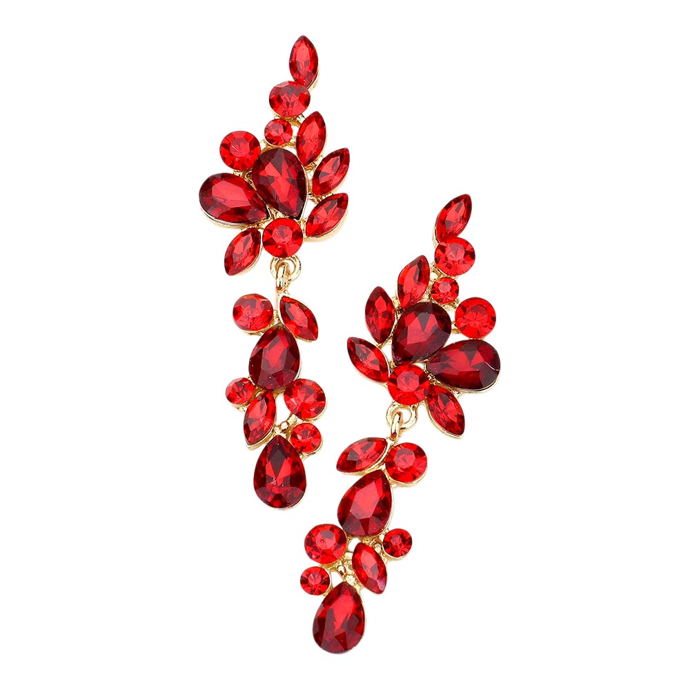 Multi Stone Cluster Vine Dangle Evening Earrings
