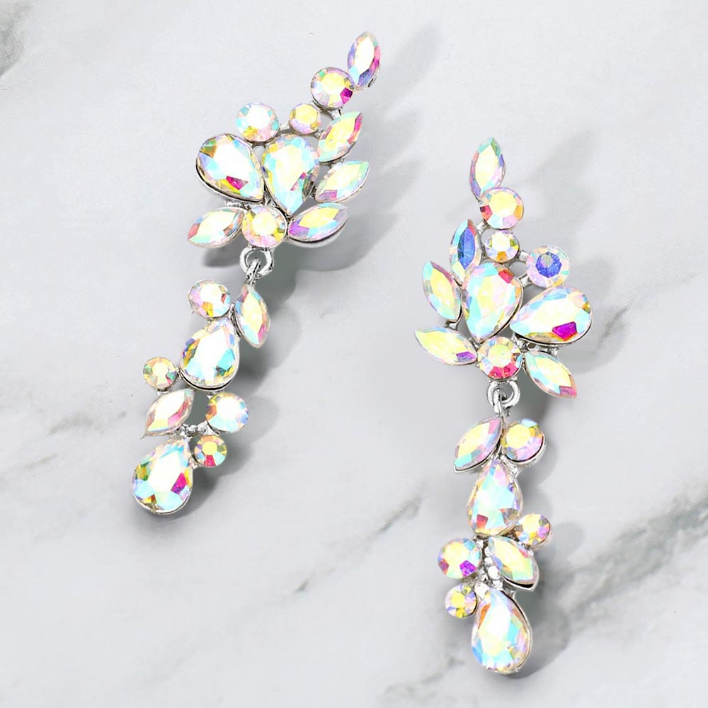 Multi Stone Cluster Vine Dangle Evening Earrings Multi Stone Cluster Vine Dangle Evening Earrings