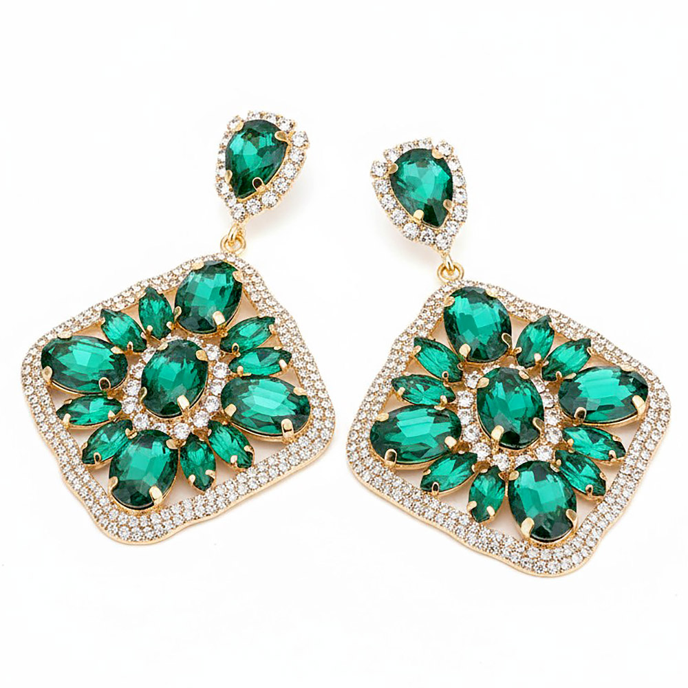 Details • Size : 1.9" X 3" • Post Back • Make a dazzling impression with these vibrant gemstone statement earrings. Designed with a radiant mix of sparkling stones, they capture luxury and confidence in every detail—perfect for parties, weddings, or elevating your everyday style with striking sophistication. • Lead and Nickel Compliant