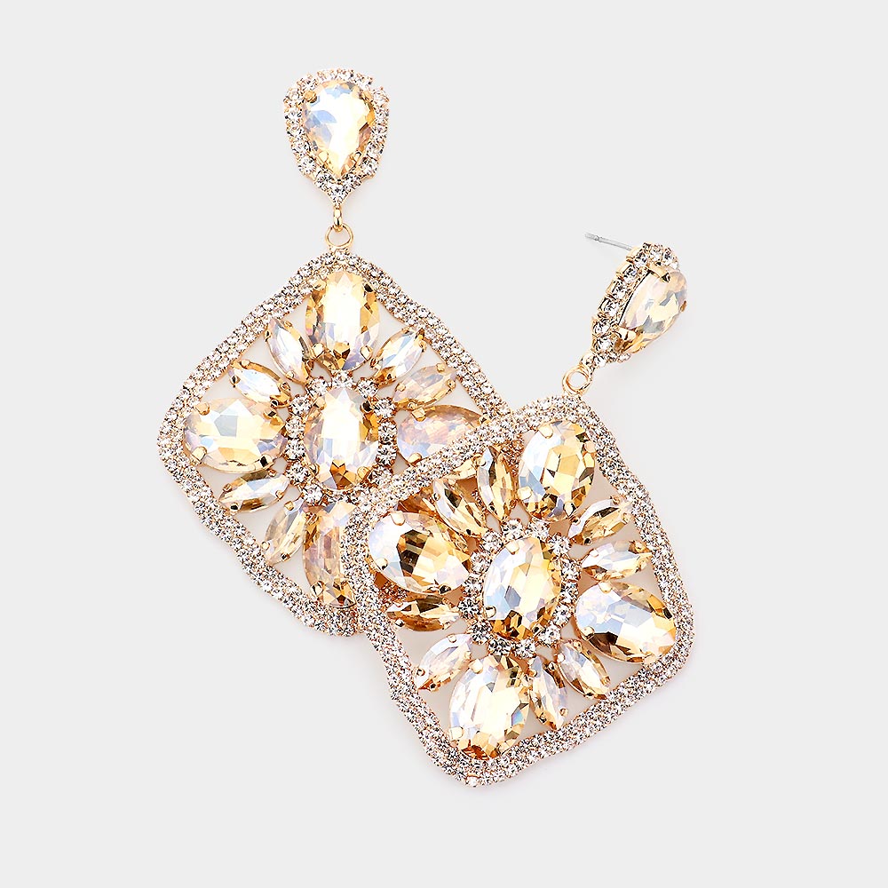 Rhinestone Trimmed Teardrop Stone Dangle Evening Earrings