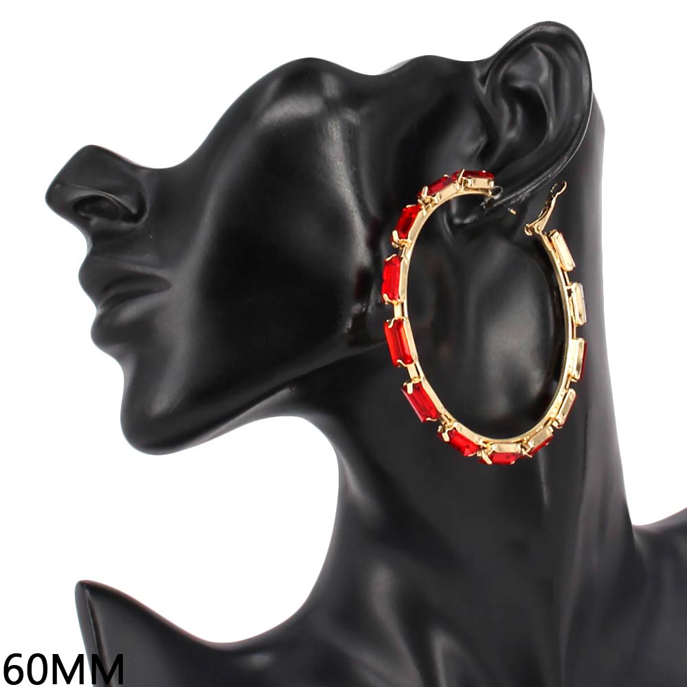 Details • Size : 2.75" X 2.75" • Omega Closure • Bold statement hoop earrings featuring a sleek baguette-inspired silhouette that adds structure and shine to any look. Designed for trend-forward styling, these hoops elevate everyday outfits, evening wear, and boutique collections with a confident, fashion-focused edge. • Lead and Nickel Compliant
